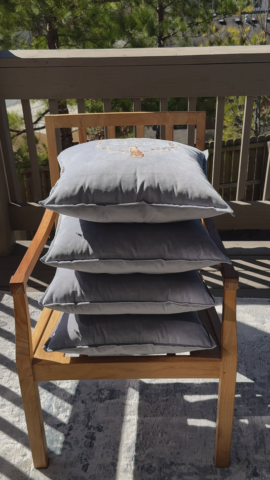 Decorative velour cover for pillow with embroidered dogs and wreaths - an ideal gift and stylish home decor