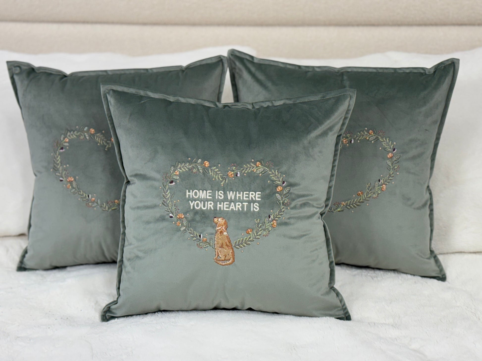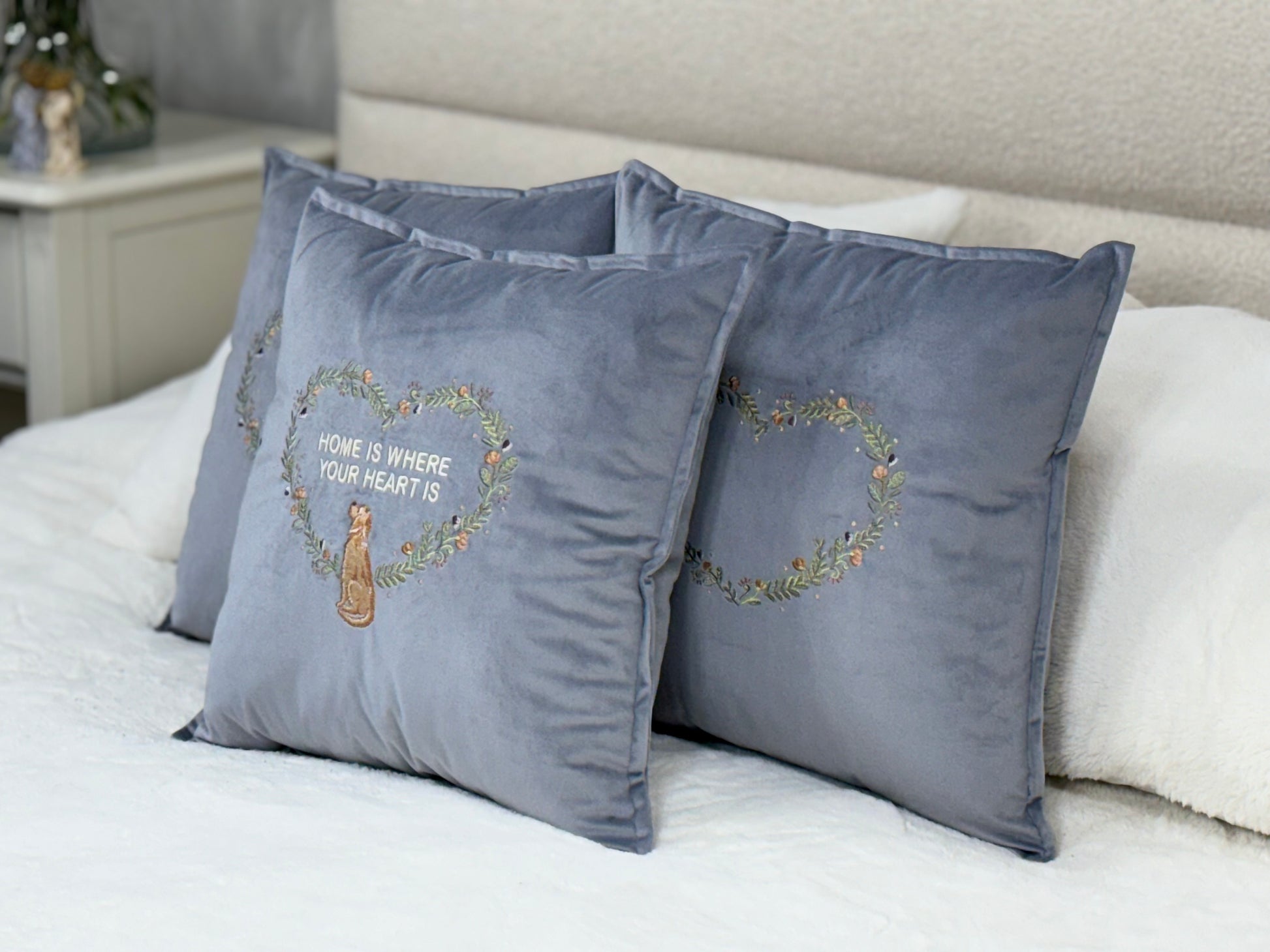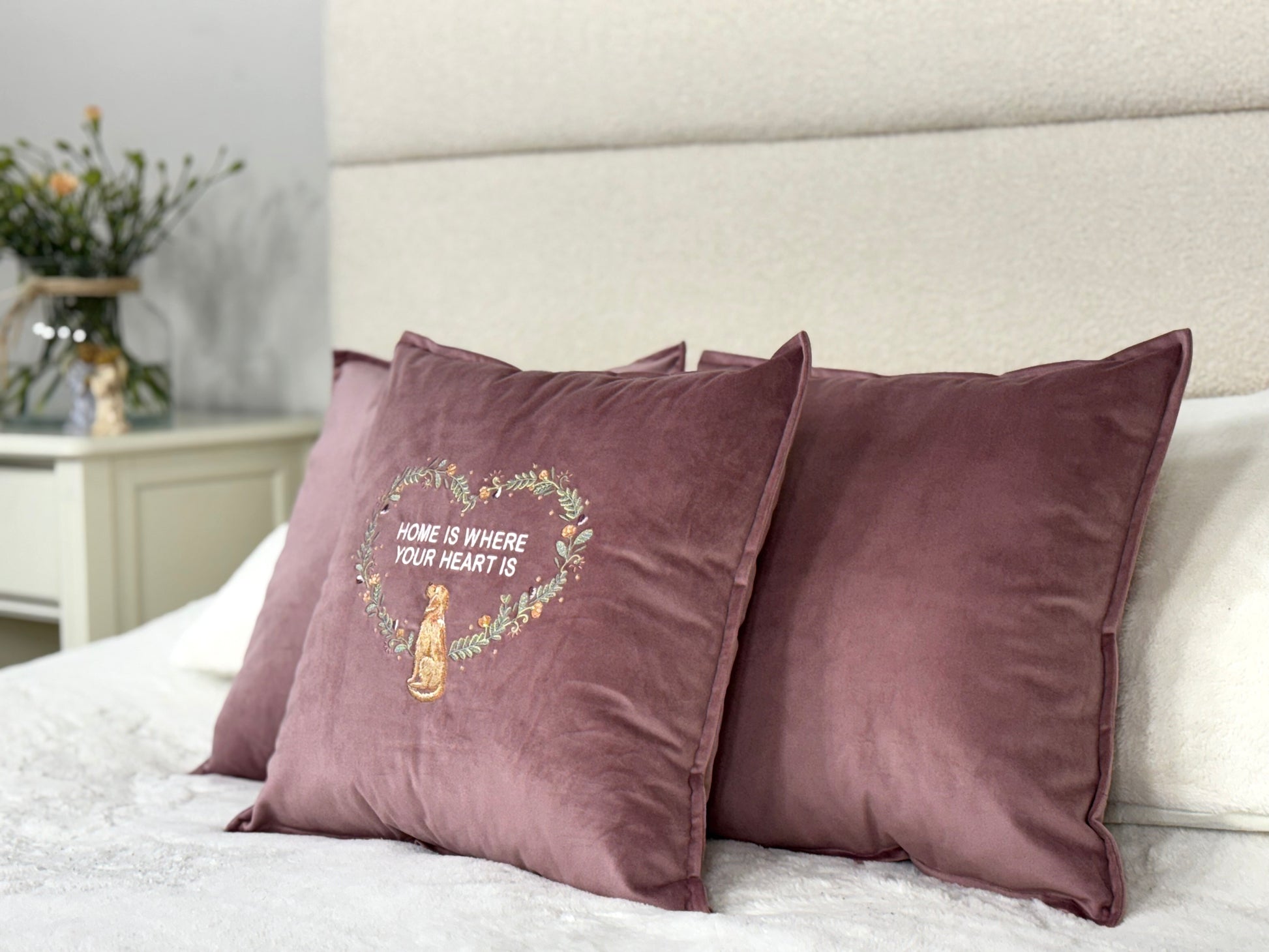 These decorative cushion covers, crafted from soft velour with unique embroidery, will not only add a stylish accent to your home, but also make the perfect gift for those who appreciate coziness and originality. The cute dog designs, intricate patterns, and charming wreaths will bring warmth and coziness to any room. These pillows will be a wonderful addition to your sofa, bed, or armchair, adding both sophistication and comfort to your interior. Choose a color cover that matches your style and create a one-of-a-kind decor in your home.