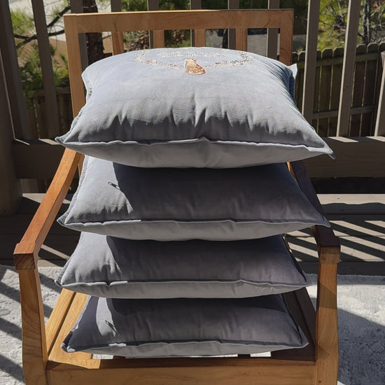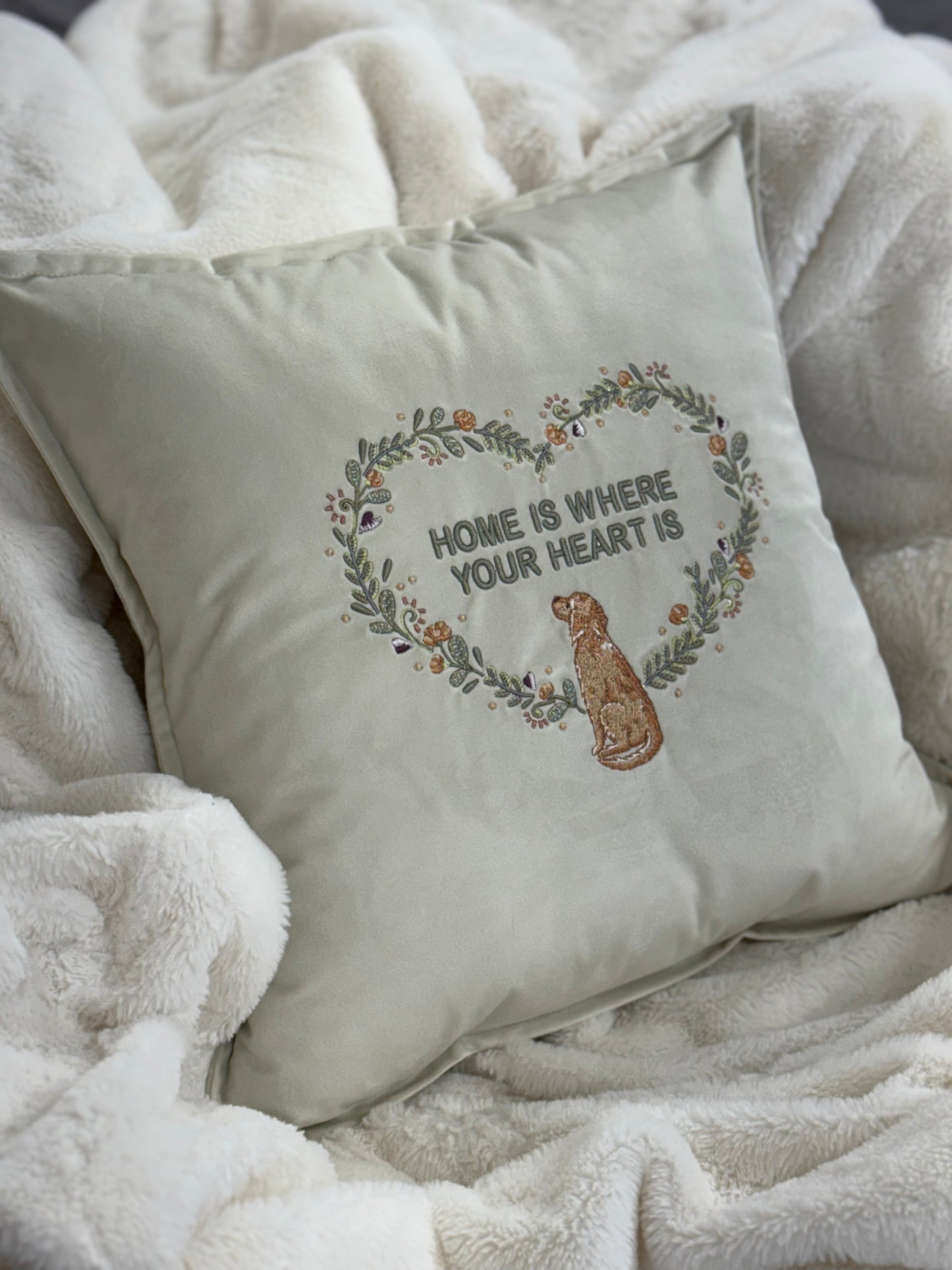 Decorative velour cover for pillow with embroidered dogs and wreaths - an ideal gift and stylish home decor